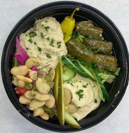 Fried eggplant diced tomatoes. Green and red peppers, onions, chickpeas mixed with a homemade tomato sauce and garlic.